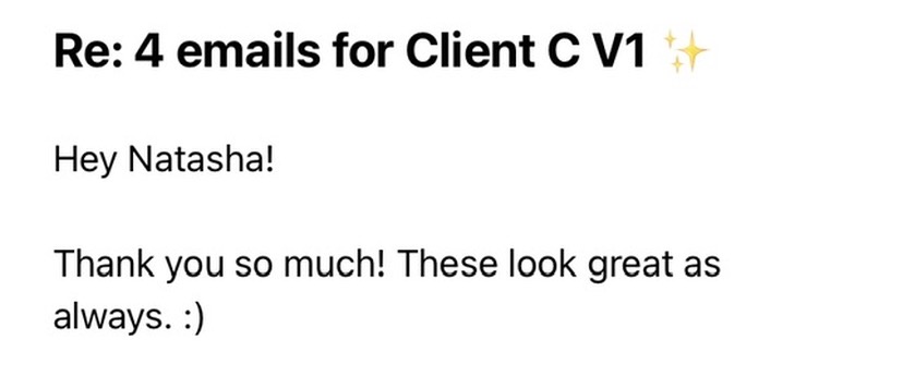 You then send the copy to the client! If they have any feedback, I'll sort the tweaks with a final round of edits.